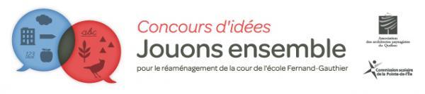 17 janvier 2012 - L'Association des architectes paysagistes du Québec et la Commission scolaire de la Pointe-de l'Île sont heureux d'annoncer le lancement du concours d'idées Jouons ensemble portant sur l'aménagement de la cour de l'école primaire Fernand-Gauthier à Montréal. Les étudiants et jeunes professionnels en architecture de paysage pourront y faire valoir toute leur créativité et leur sensibilité en créant un projet de cour d'école qui aura entre autres qualités de favoriser le développement de la sociabilité, de l'imaginaire et de la motricité.