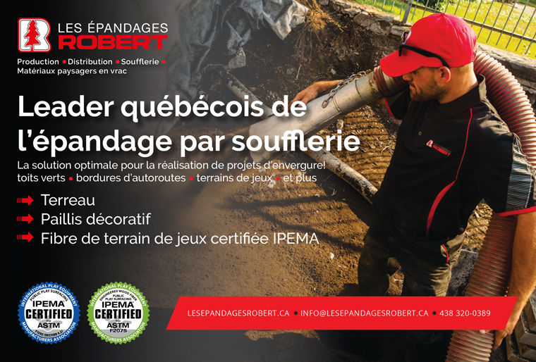 Les Épandages Robert Nouvel affichage Numéro de téléphone: Bureau: 438 320-0389 poste 204. Ligne directe: 438 320-0388Courriel: info@lesepandagesrobert.caSite Web: Les Épandages RobertNom de la personne contact: Robert BariteauImage: Catégorie de fournisseur: Aires de jeuxBordures, murs et muretsGazon et ensemencementMatériaux horticoles (terre, engrais, paillis, etc.)Mobilier urbain