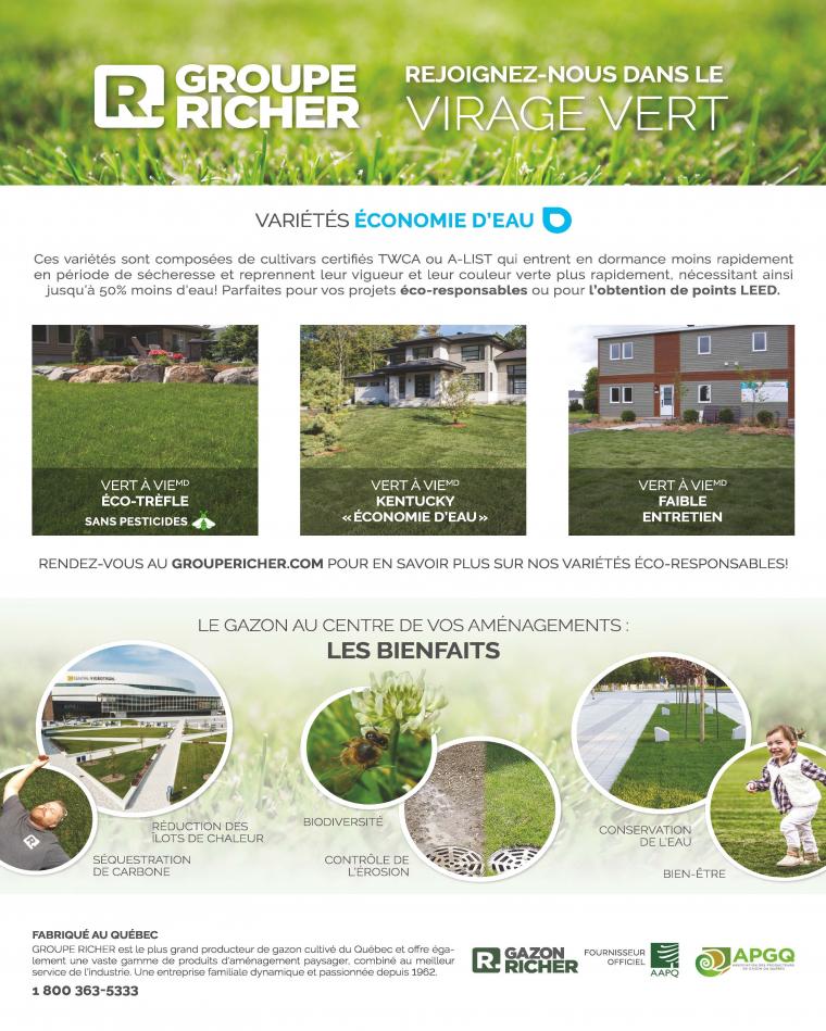 Groupe Richer Nouvel affichage Numéro de téléphone: 1 800 363-5333 poste 924Courriel: stephane.pigeon@groupericher.caSite Web: groupericher.comNom de la personne contact: Stéphane PigeonImage: Catégorie de fournisseur: Bordures, murs et muretsGazon et ensemencementPavage (tous types de matériaux)Surfaces sportives