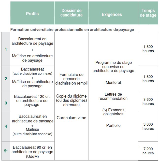 *Profil en vigueur pour les étudiant(e)s inscrit(e)s au baccalauréat en architecture de paysage (90 crédits) de l'Université de Montréal à compter de septembre 2020.