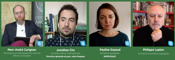 Conférence très attendue que celle portant sur l’étude de cas portant sur l’avenir parc Jean-Drapeau, grand parc urbain historique. Cette table ronde accueillait 3 architectes paysagistes : Jonathan, Pauline Gayaud et Philippe Lupien.