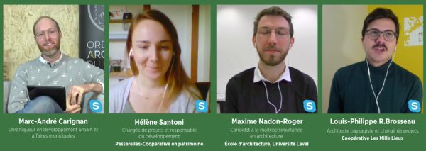 La dernière table ronde de l’événement portait sur la création du patrimoine de demain et réunissait Pierre Corriveau, président de l’OAQ, Sylvie Lagueux, architecte paysagiste senior, Éric Pelletier, architecte chez Lemay ainsi que Peter Soland, designer urbain de civiliti. « Celui qui construit aujourd’hui sera jugé dans 50 ans. Le geste doit donc être juste et équilibré », a déclaré d’emblée Éric Pelletier. Il a d’ailleurs donné l’exemple du Chalet du Sommet de Bromont, conçu comme « un trait sur le paysage qui accentue le profil de la montagne sans la dominer ». La réflexion avait été menée à l’échelle du paysage et de la nature que le geste architectural ne devait pas dénaturer.