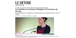Le Congrès 'Les Rurbains' a suscité l'intérêt des médias.  Un article dans Le Devoir soulignait le rôle des architectes paysagistes au cœur des projets innovateurs présentés par les différents conférenciers internationaux. Consulter l'article publié dans Le Devoir ici