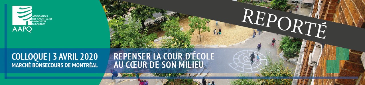 Suite à la directive gouvernementale émise hier concernant les risques de propagation du COVID-19, l'AAPQ annonce que son colloque "Repenser la cour d'école au coeur de son milieu", qui devait se tenir le 3 avril 2020, est reporté à une date ultérieure.