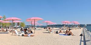 Après avoir remporté le concours international de design lancé par le TWRC en 2007 pour le réaménagement du Quai Jarvis, l’équipe de Claude Cormier et Associés crée Sugar beach, un parc qui s’intègre au plan directeur de revitalisation du Toronto Waterfront. L’équipe séduit à nouveau les torontois avec une nouvelle plage urbaine au Centre ville ou l’on retrouve saules pleureurs et buttes surgissant du sable le long de la promenade qui mène à la plage de sable fin blanc et de parasols roses qui surgissent dans un paysage mi-urbain, mi-vacancier. L’espace est aussi meublé de chaises Adirondacks blanches et de deux immenses rochers de granite.
